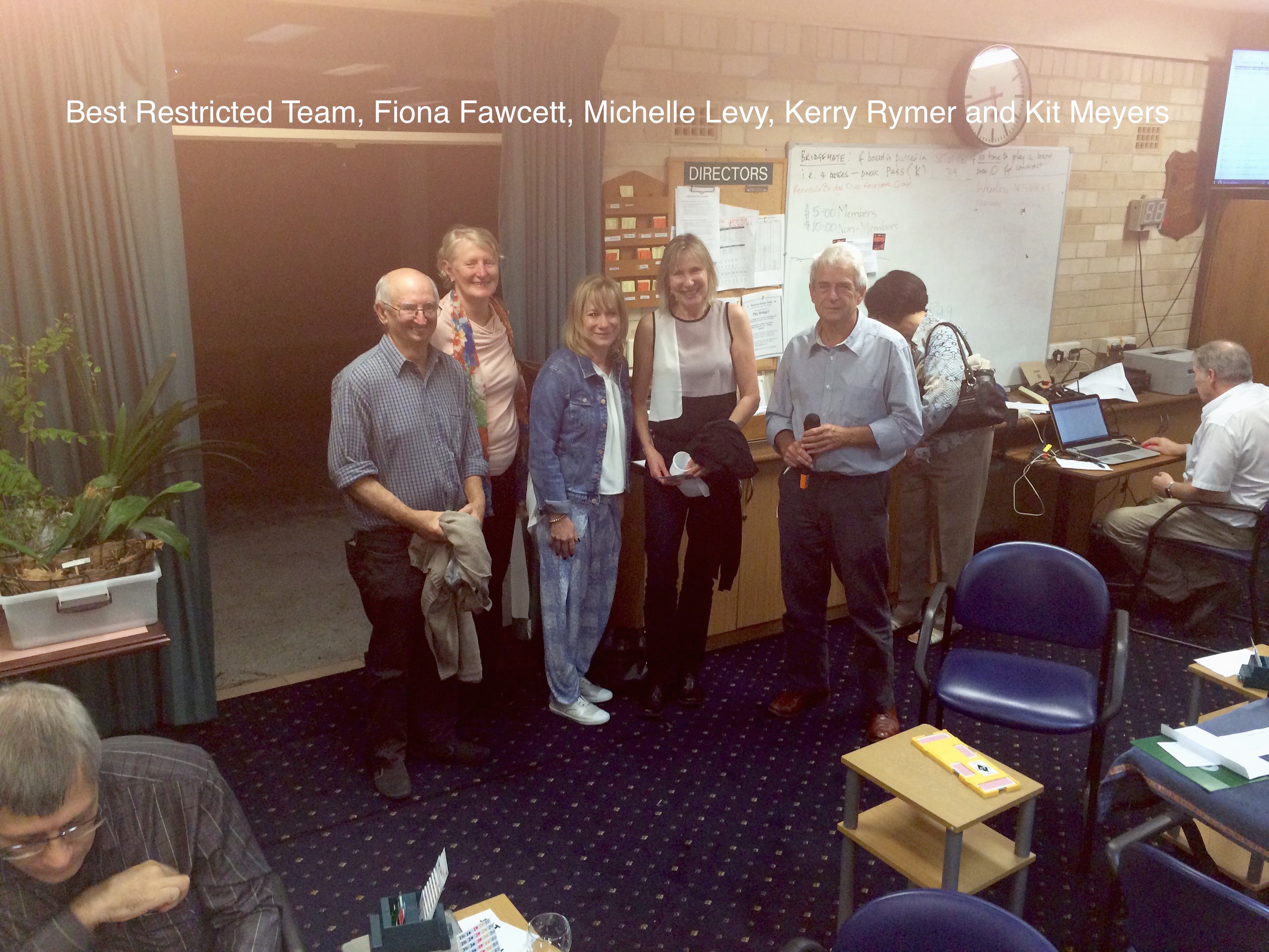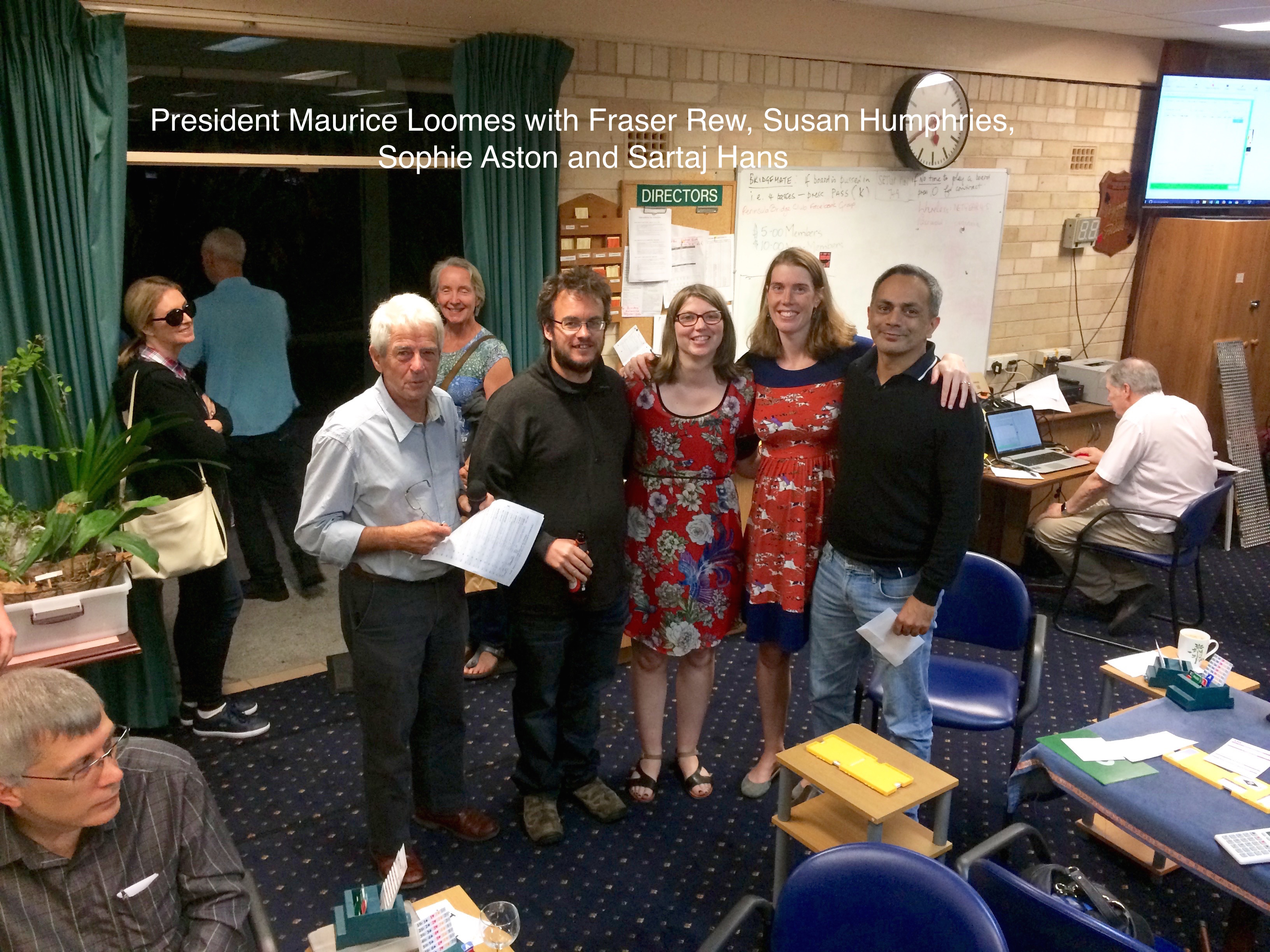 We had a great turnout of 32 teams for the Swiss Teams Congress at Peninsula on Sunday.  There were some very impressive names in the field.  John McIlrath did a splendid job of directing on the day.  The Hans team consisting of Sartaj Hans, Fraser Rew, Sophie Ashton and Susan Humphries were unbeatable with 7 wins.  Coming in 2nd place was the Bock team with Steven Bock, John Newman, Derrick Browne and Joshua Wyner and in 3rd place the Sharp team with Marilyn Chadwick, Toni Sharp, Liz Fanos and George Finikiotis.  Best Peninsula team was the Bertram team that did extremely well and came 5th with Jocelyn Bertram, Chris Duggin, Margaret and Michael Draper.  The best restricted team was the Fawcett team with Fiona Fawcett, Michelle Levy, Kerry Rymer & Kit Meyers.  Congratulations to all these teams. Click here for the full results.