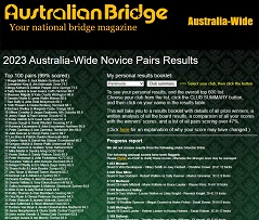 The results are available at Australian Bridge, including a commentary on how the boards were actually played (click on a name in any club).