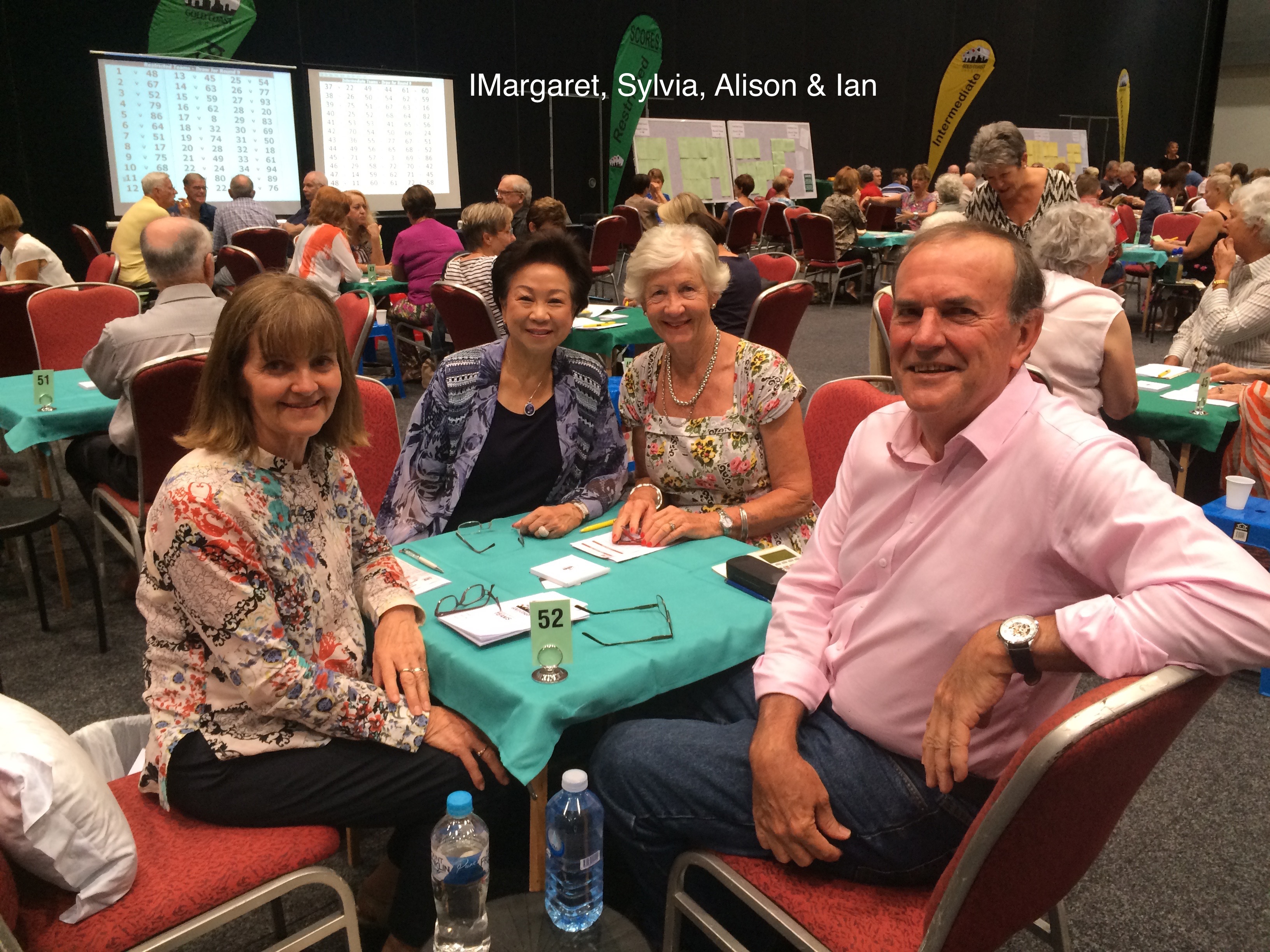 The Van Weeren team with Hans, Peter Clarke, Norman Greche and Colin Dempster did fantastically well to come 2nd in the Novice Teams Championship. Hans and Peter also did well to come 4th in the Novice Pairs. Suzanne Cole and Jennifer Ardill came 11th in this event. Robin Ho and her partner Alex Cook won the Ivy Dahler Butler Swiss Pairs. Congratulations to them. Vivien Eldridge & Alan Davies did very well in the Intermediate Pairs to come 6th; they also came 11th in the Intermediate division of the Ivy Dahler Intermediate Butler Swiss Pairs and 11th in the Intermediate Teams Championship with Maurice and Rachael Loomes. Maurice & Rachael came 11th in the Restricted division of the Ivy Dahler Butler Swiss Pairs.