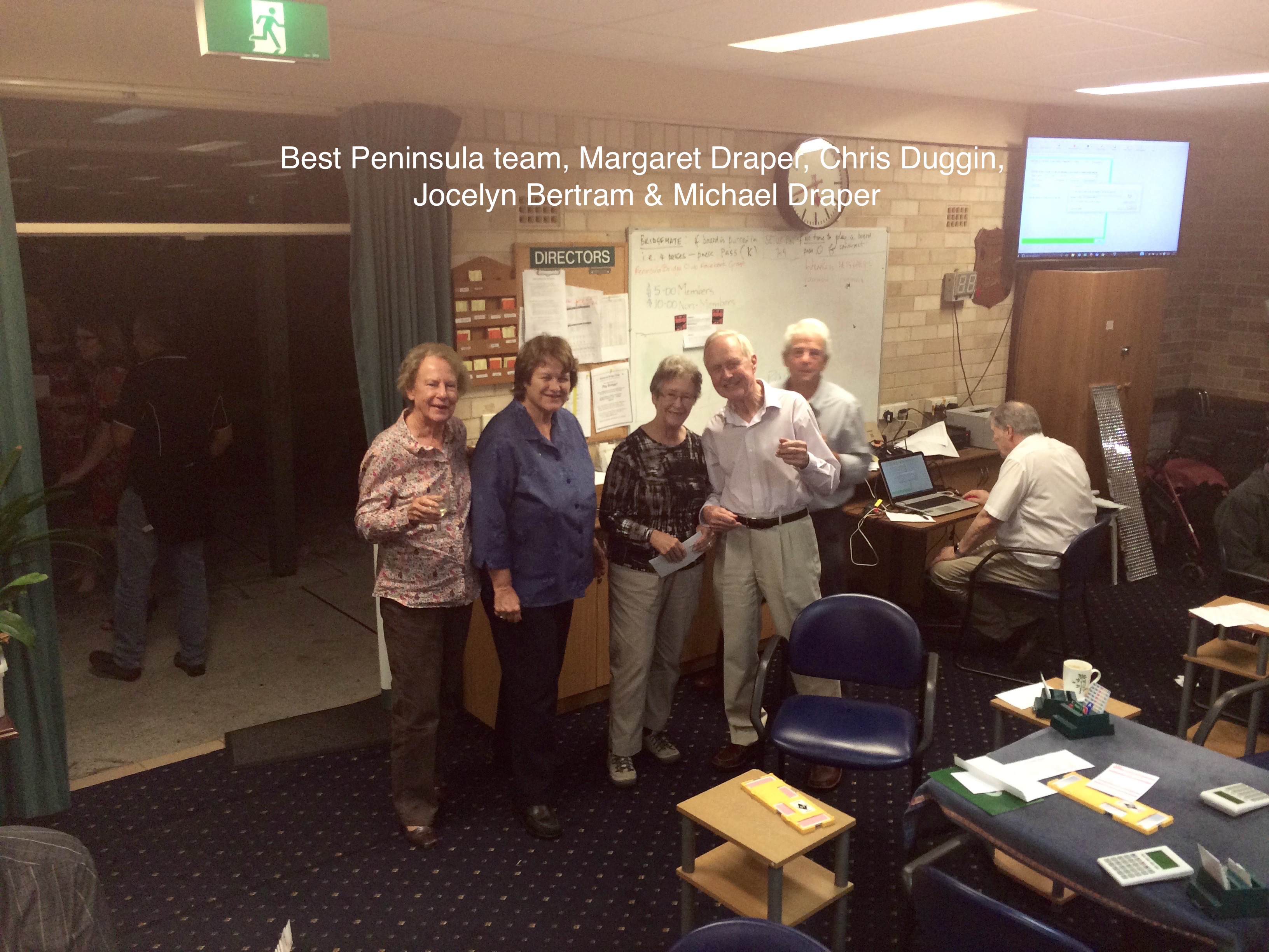 We had a great turnout of 32 teams for the Swiss Teams Congress at Peninsula on Sunday. There were some very impressive names in the field. John McIlrath did a splendid job of directing on the day. The Hans team consisting of Sartaj Hans, Fraser Rew, Sophie Ashton and Susan Humphries were unbeatable with 7 wins. Coming in 2nd place was the Bock team with Steven Bock, John Newman, Derrick Browne and Joshua Wyner and in 3rd place the Sharp team with Marilyn Chadwick, Toni Sharp, Liz Fanos and George Finikiotis. Best Peninsula team was the Bertram team that did extremely well and came 5th with Jocelyn Bertram, Chris Duggin, Margaret and Michael Draper. The best restricted team was the Fawcett team with Fiona Fawcett, Michelle Levy, Kerry Rymer & Kit Meyers. Congratulations to all these teams. Click here for the full results.