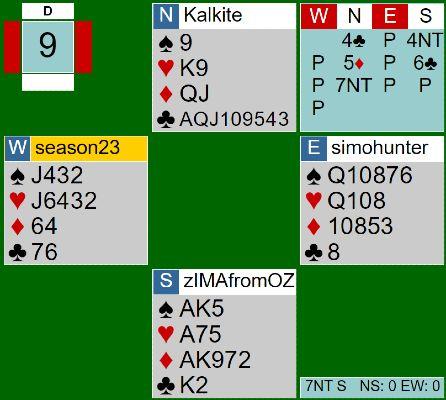 This is one of the hands selected for this Slam Dunk game - designed to challenge keen players with situations like competitive bidding, preempts and slam hands - and some where declarer finds unexpected distributions or other issues they need to adjust for.