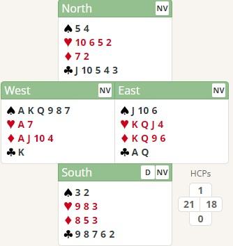 This powerful pair of hands was dealt in the recent NSWBA U100MP finals. 39 HCP between E and W!